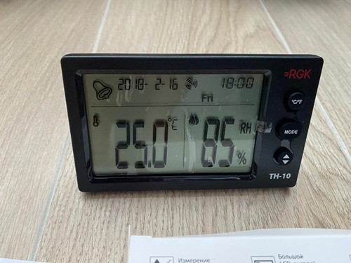 Термогигрометр RGK TH-10 — простой, но очень полезный прибор для дома, офиса или склада. Показывает температуру и влажность точно и в реальном времени — цифры обновляются быстро, шкала на экране крупная, всё легко читается даже издалека.